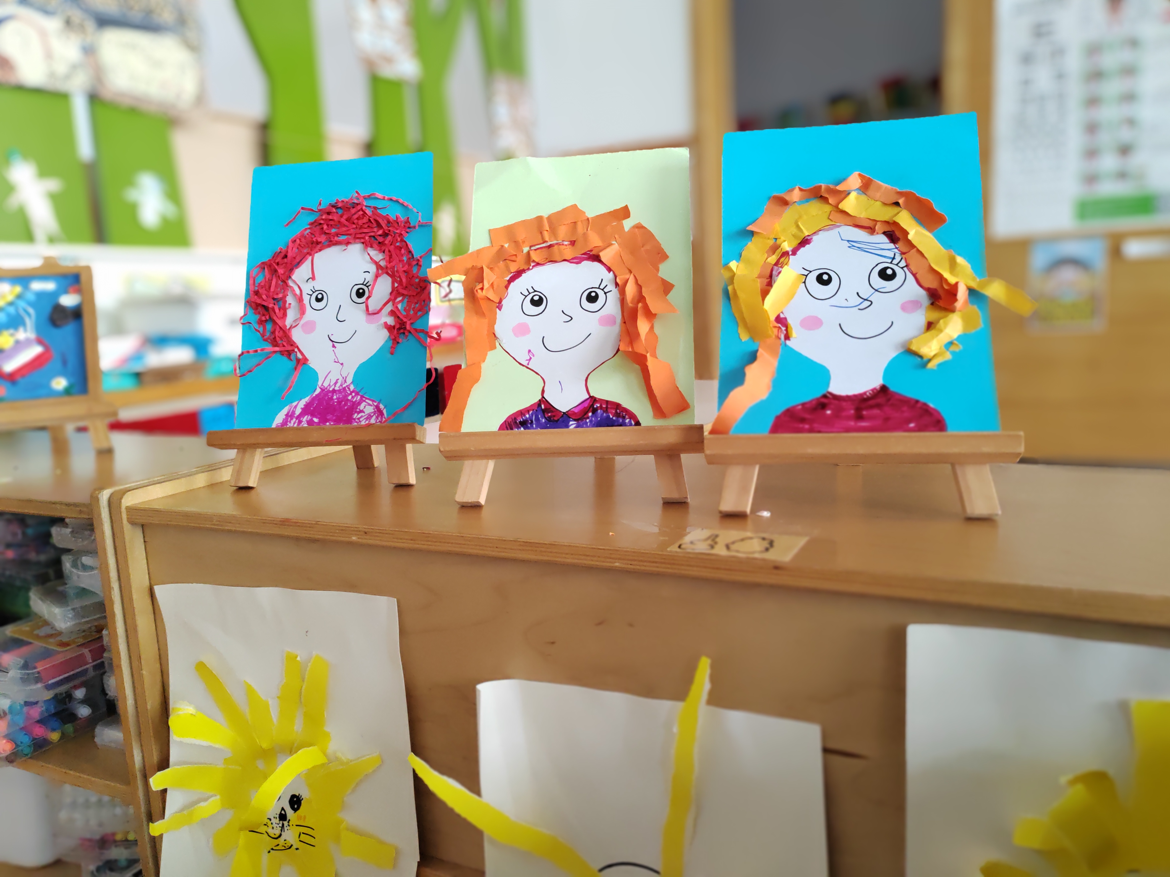 今天,我们的画廊里不只有天马行空的画作,还多了一道格外美丽的“风景线”——宝贝们给妈妈设计的新发型。